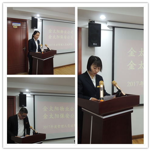 2018年2月10日8︰00,在公司會議室,馬鞍山市金太陽物業(yè)管理(保安服務)有限公司舉行管理人員述職大會,會議由“金太陽” 兩公司總經(jīng)理袁夢雪女士主持,董事長朱曉梅女士出席述職大會。