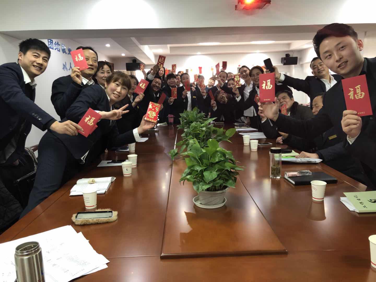 述職大會結束前,“金太陽” 兩公司董事長朱曉梅女士發(fā)表講話,肯定了各述職人的工作成績,鼓勵大家今后努力改進工作上的一些不足,共同書寫“金太陽”2018最美好的故事。會后,朱董親手為每位管理人員派發(fā)紅包,并送上新春的祝福!